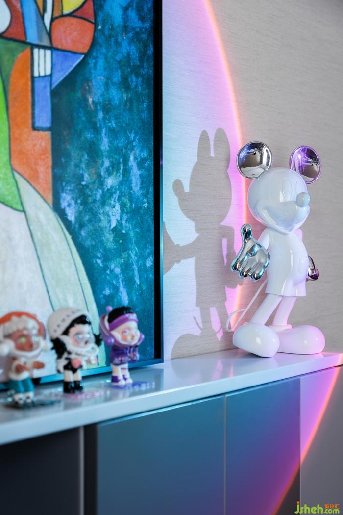 客厅丨自然清爽的场景色调,适合一个人独处的放松纾压,让情绪在柔美安宁的布景中得以舒缓和抚慰,创意十足的配饰置景为空间带来了丰富多元的互动体验,动静相宜,为居者提供了一个极其Chill的空间