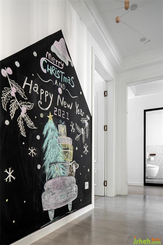 一个人最开心、最无忧无虑的时候,那大概就是在孩提的时候吧。抛开大人们的想法,根据小孩子的喜好,创造一个独一无二的童年生活。小小的黑板墙,上面涂鸦着孩子与妈妈一起完成的作品。