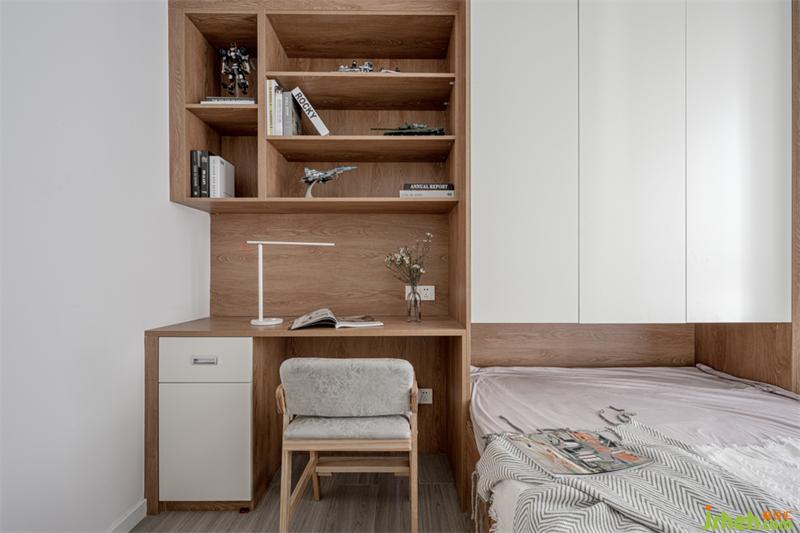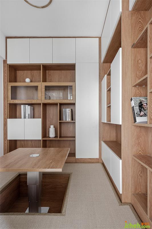 想要一个独立的书房,能够静心工作、学习。榻榻米的形式,让空间实现最大化的利用。宽大的工作台,这是男女主人工作、学习的独享柔时光地方。