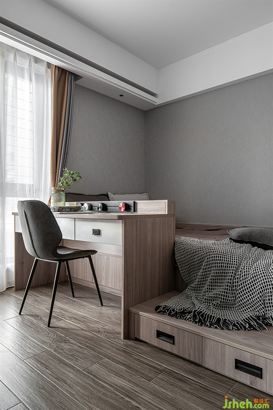小孩房采用中性的大平层设计,结合空间及小孩爱玩天性采用高低错落的榻榻米,希望ta拥有一个快乐的童年。
