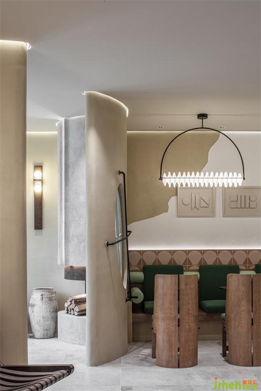 The desert oasis is the most difficult to find, and the jasmine fragrance around the corner is more refreshing. The entrance is not lush and luxuriant. Instead, it extends the original texture of micro cement to the interior. The rough wall is not only like a relic of industrial civilization, but also like an ancient parchment. It integrates the interior and exterior design, paving and display, creating the end scene, echoing the log decoration, creating a mottled sense of desolation.