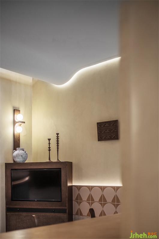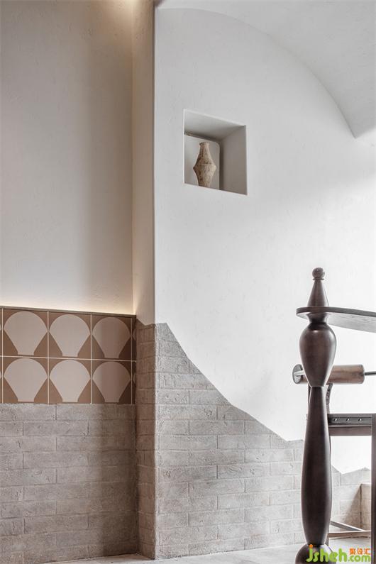 伴随着天花曲线的舒展,空间打破了原有的框线桎梏,用不规则的砖面和墙体对空间进行了切割与重塑,极大强调了区域的独立性和立体性。