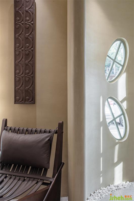 The desks and chairs with different shapes and materials are distributed in order. Through the change of seat height, the geometric relationship is interspersed, and the sense of hierarchy of space is increased. The vertical geometric chandelier brings the relationship between human and space closer, and enables consumers to enjoy a leisurely time alone while enjoying tea.