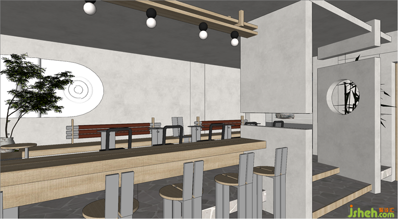 结构艺术化,亦是本案设计规划的重点。奶茶店设计室内遵从并延续其建筑形制,化繁为简,采用精炼的手法构筑大块面轮廓。通过制造一些戏剧感的细节,让各功能分区合理有序的以递进式铺展开来,充分发挥了建筑与空间的对话作用。同时,将开放互动性贯穿其中以突出店面功能层次感,进一步强化整体感以及开阔度,从而实现空间布局的和谐统一。