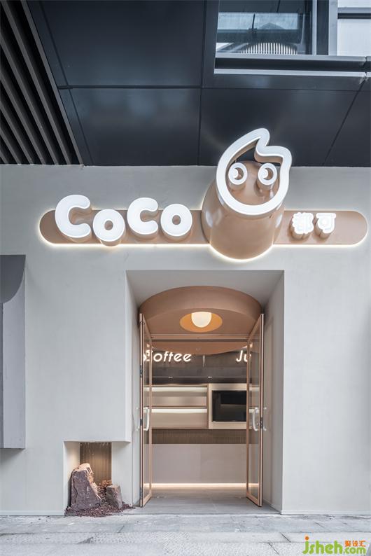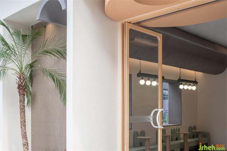 奶茶店设计把手的造型灵感源自于品牌的首字母“C”,艺术语汇和品牌LOGO在虚实之间交错,即具有独特的辨识度,又彰显现代的高级感。