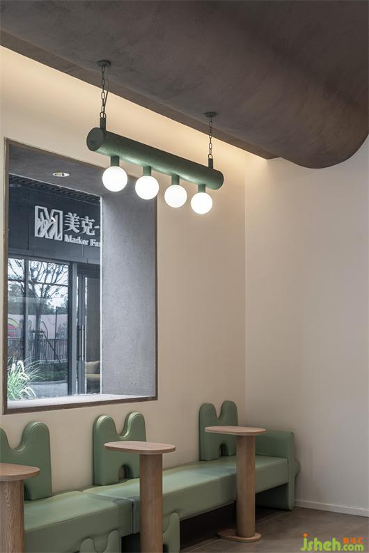 Walking in, you will find thatthe interior follows the simple and restrained appearance with milk tea color and senior gray as the main tone, supplemented by logs and light green, injecting fresh and natural meaning into the space andlaying a warm and healing social atmosphere. Designers use modern architectural thinking, from the combination of curves and straight lines, extract and extend the regular form to build a spatial relationship andto create a transparent, open, hierarchical dining environment.