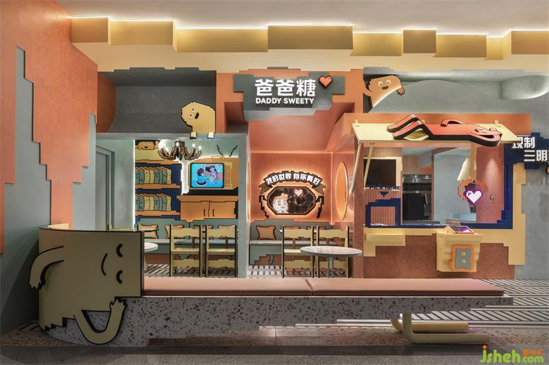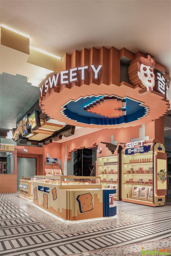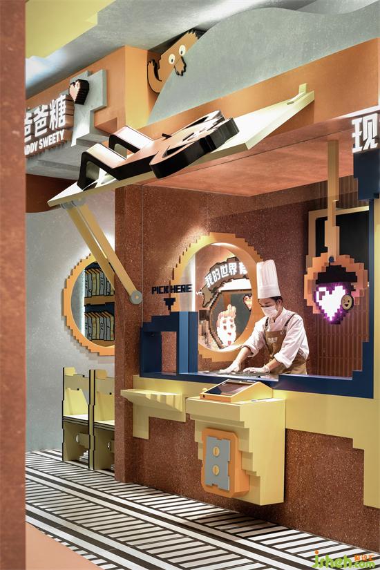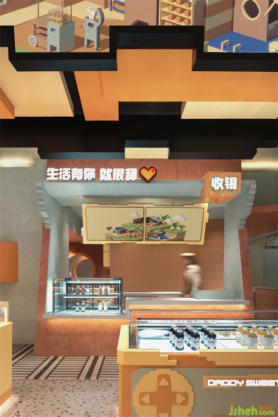 空间以立体方块搭建组合而成,造型可爱生动,并融入了多种卡通元素,店铺设计以积木搭建叠加的排列组合,让空间实现从上到下、由里而外都弥漫着经典怀旧像素风,给人一种仿佛穿越到游戏世界的空间交错感,激发心底探索的渴望。
