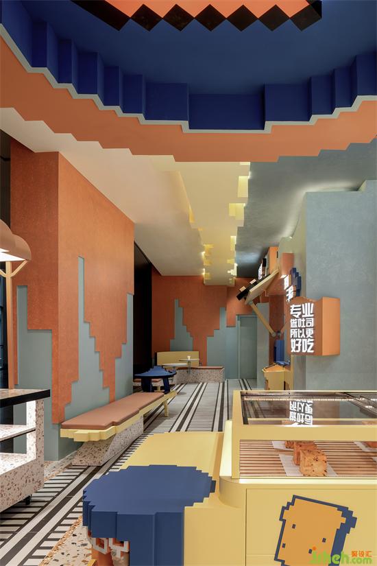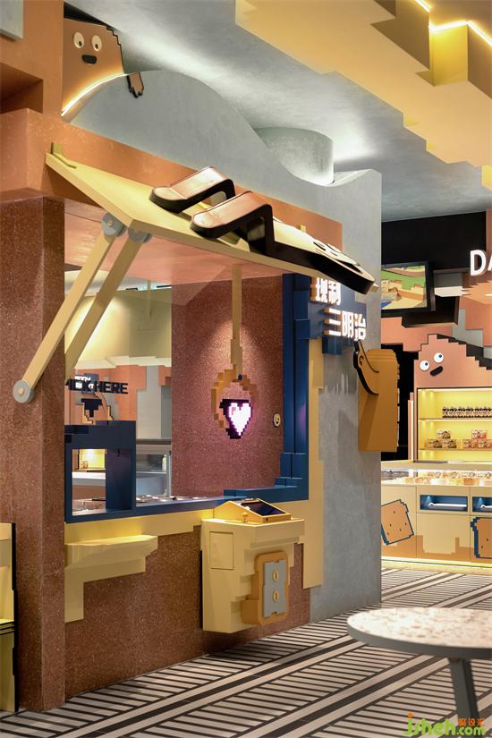 The smooth L-shaped circulation route leaves space to stay and choose for customers, and it also fully displays the production process of toast from the game perspective of visiting the "Toast Town". The retail, production, display, and public leisure areas are all available, prompting consumers to enter the store, purchase, pay, stay, and enjoy food. All behaviors naturally occur there.
