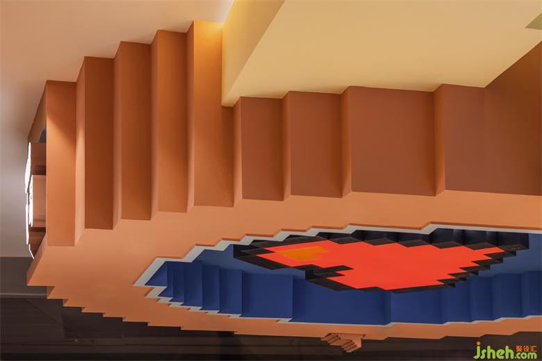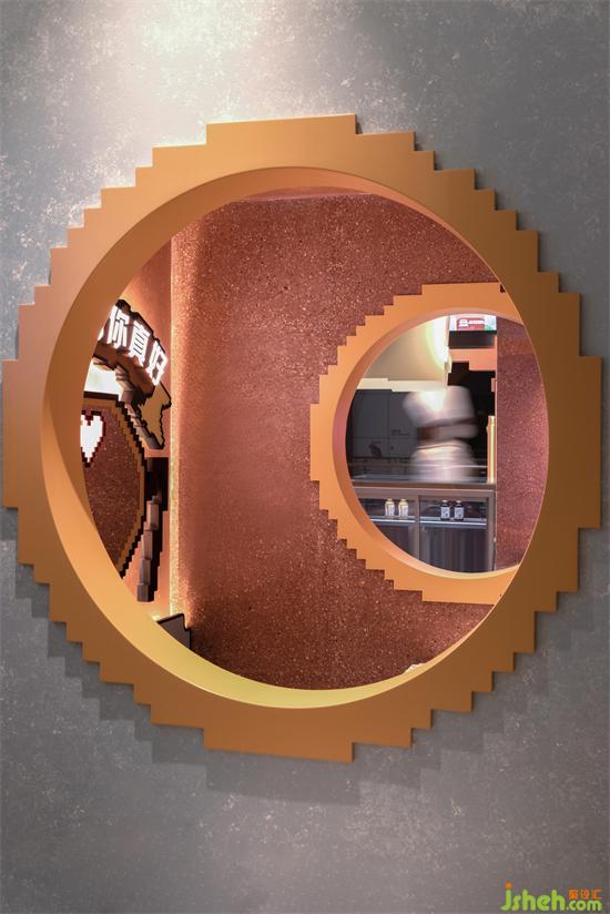 在空间景观纵深上,设计团队采用隔断、镂空窗体、玻璃、以及丰富的背景墙呈现多元视觉延伸体验,墙体乃至天花板都进行诸多像素风细节处理,店铺设计以层层叠加的方式营造更为立体的3D世界游戏环境,流畅的沉浸式氛围感在瞬间迸发。
