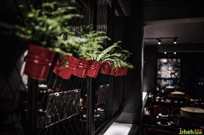 黑色的铁件铁网,是工业风格的设计元素。加入富有生命力的绿植和其它工业元素的装饰,软装更显丰富。有趣的是,使用者可以随意调整植物和装饰品在铁网间的位置,增加空间细节上后续的可变性。
