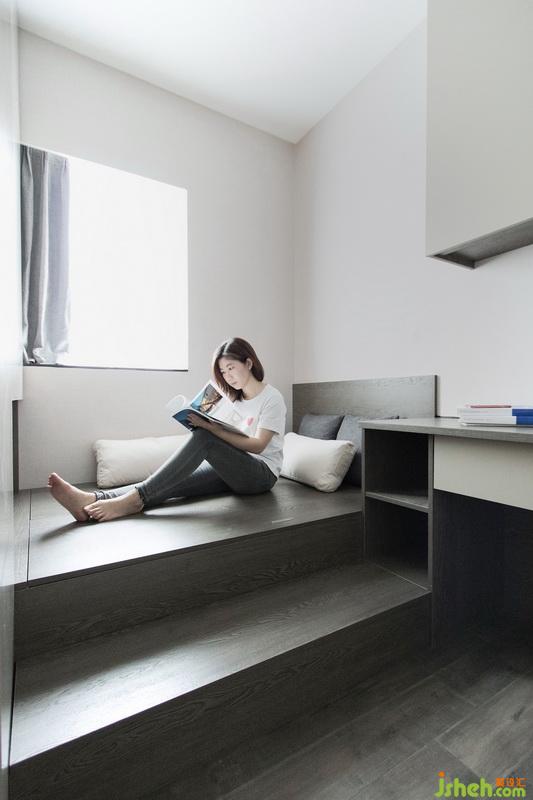多功能房佛山装修公司使用定制榻榻米。靠墙的书柜、书桌、衣柜和榻榻米,再加上小楼梯都是收纳空间,大大提升了空间的使用率。多功能房前期作为书房使用,后期切换为儿童房也是十分方便。在这小小天地,生活的方式亦可随心切换。