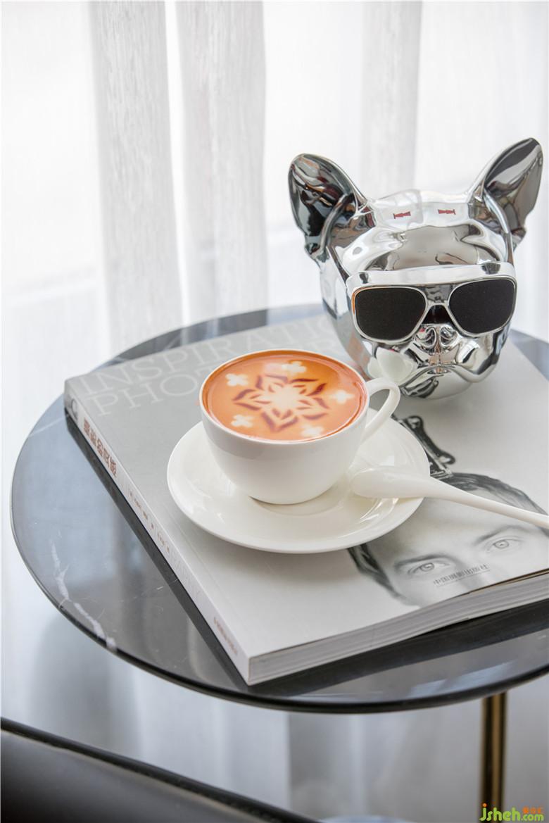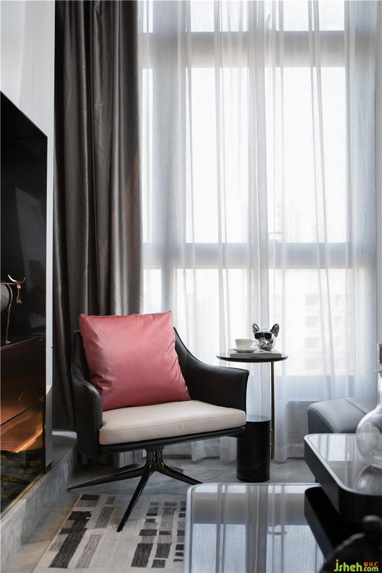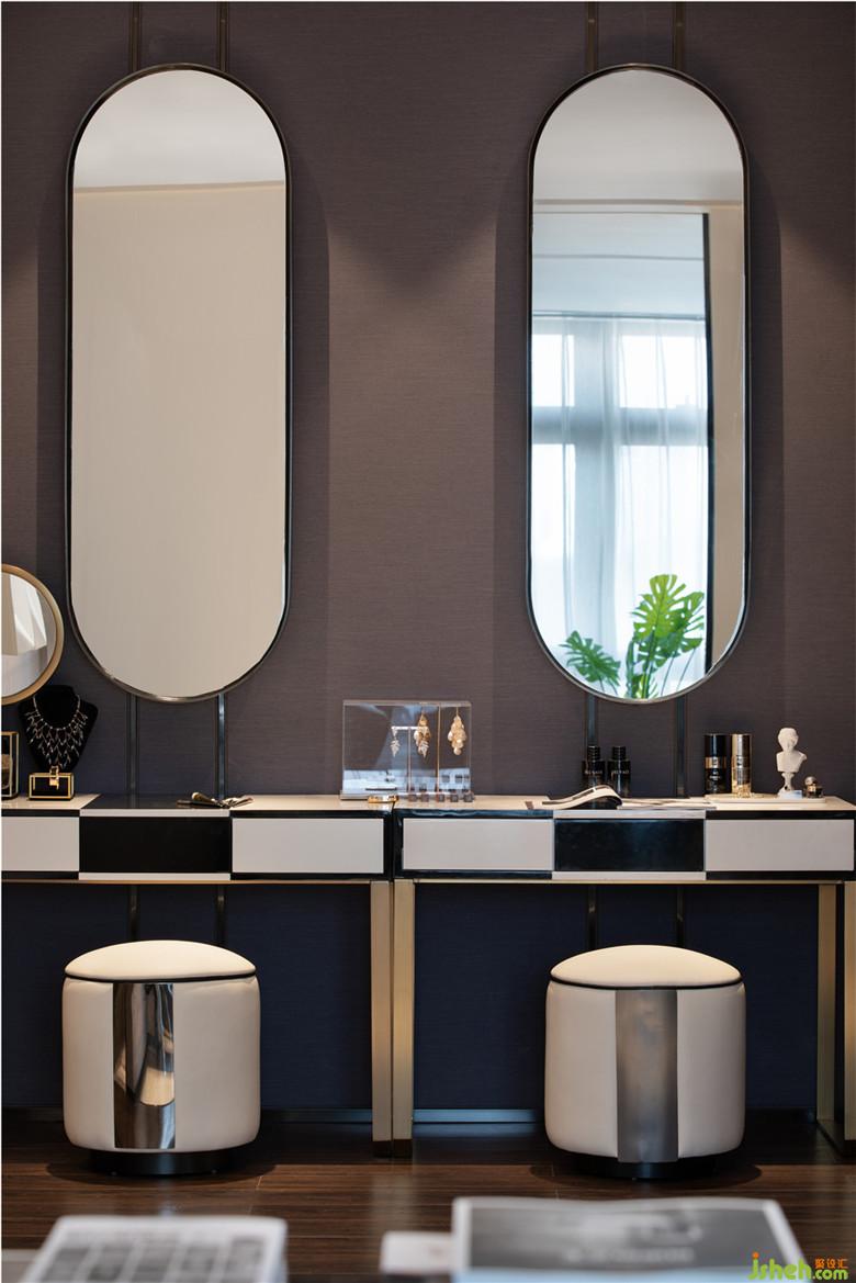 金属感十足的造型间,室内设计师配以两面椭圆形镜面,让室内更显通透,里间最主要的摄影区域,较之却最为简单直白。