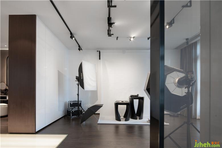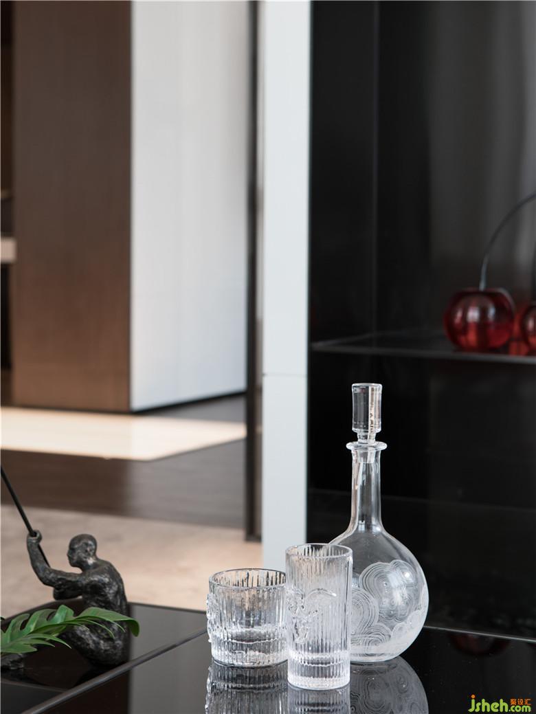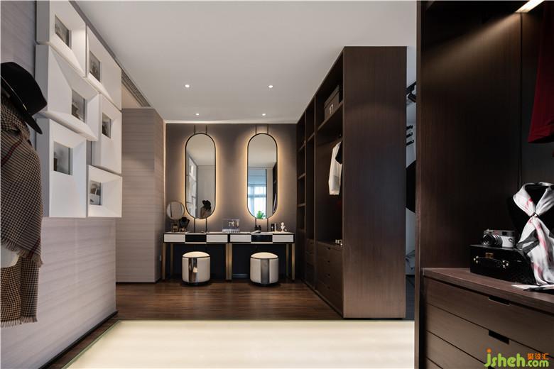 整个空间室内设计师以深胡桃木地板搭配,配以同色系衣柜,张弛有度,在造型感独特的金属吊灯下充满了雅致怡人的感觉。