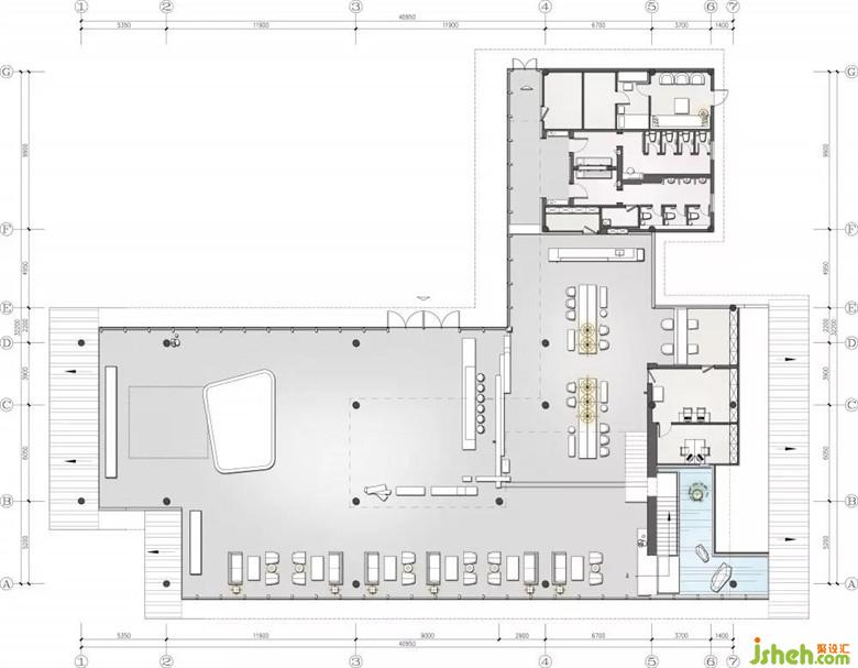 一楼接待区和二楼的VIP区之间,静默存在又彼此串联。吊脚楼强化了一楼与二楼架构空间的起、承、转、合,成就一种“你中有我,我中有你”的布局性手法,这不禁令人联想到山城的大街小巷,跌宕错落中又不缺乏奇幻的瑰想。