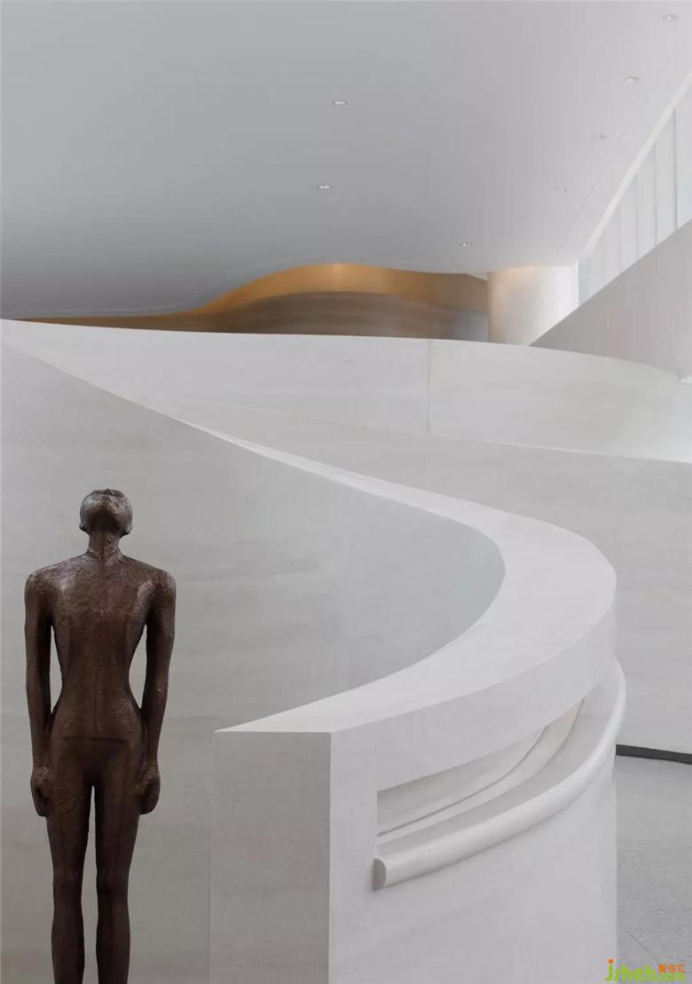 立于廊道一侧的人形雕塑造就空间的仪式感,装修公司的设计师通过形体的拿捏传达着对宇宙的仰望与遐想。