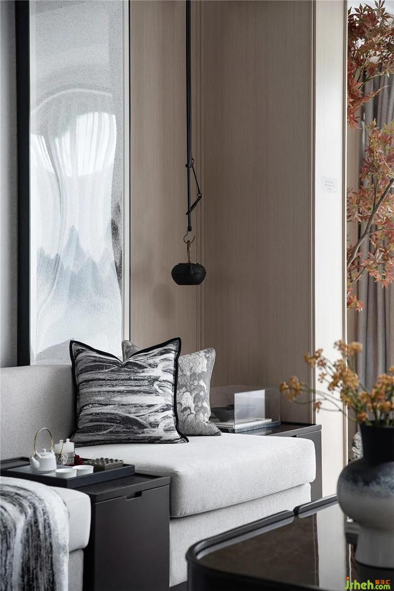 样板房设计空间素墨色彩与纹理的相协,现代形制中不乏绵绵古韵。清风入堂,辉光漫洒,斟上半盏清茗相邻而坐,宁静的不止是空间,更是心境。