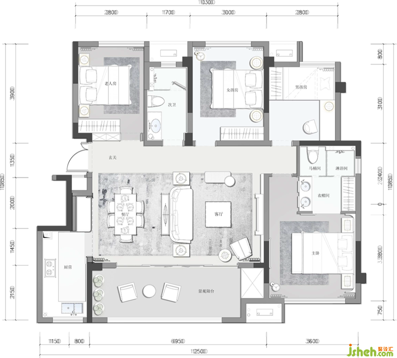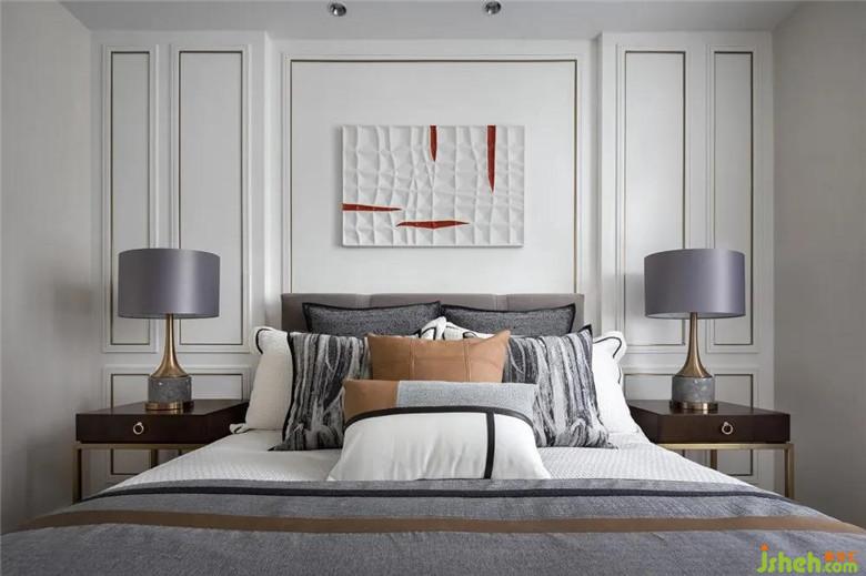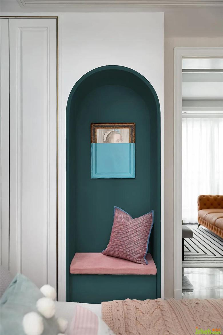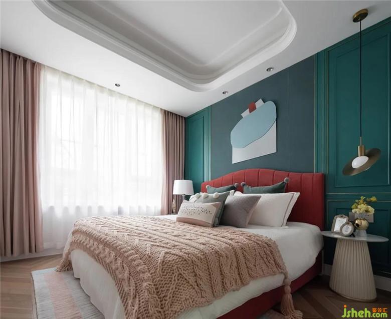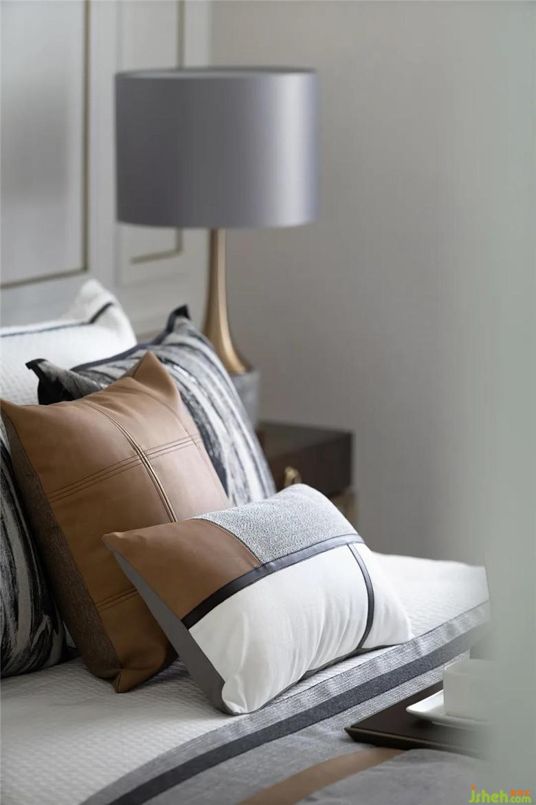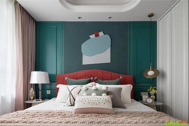 起居室直入心扉的,是平静又愉悦的「归属感」,不自觉让人放松下来。背景墙延续整体欧式味道,灯别具一格复古构局,似在古堡小憩一般,触摸布纹毛绒的床品,指尖下流淌的是细腻而饱满的颗粒度。