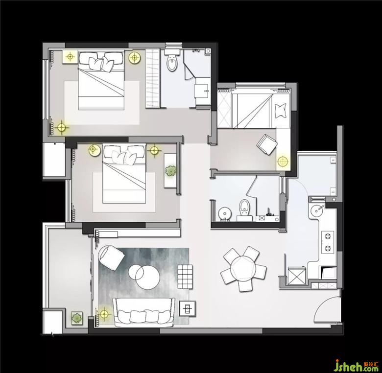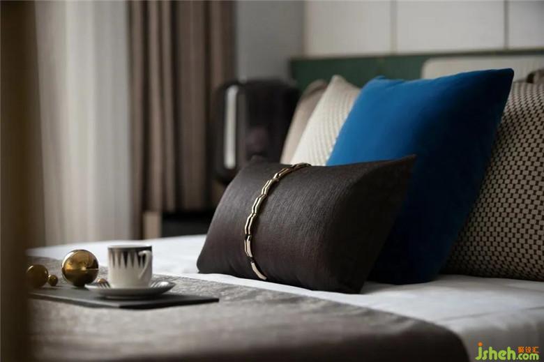 样板房设计取代华而不实的堆砌,空间里流连着简凝清雅的气质,宁然而惬意。淡雅温润的床品,镶嵌在现代简约感之中,赋予空间柔和静谧的色彩。