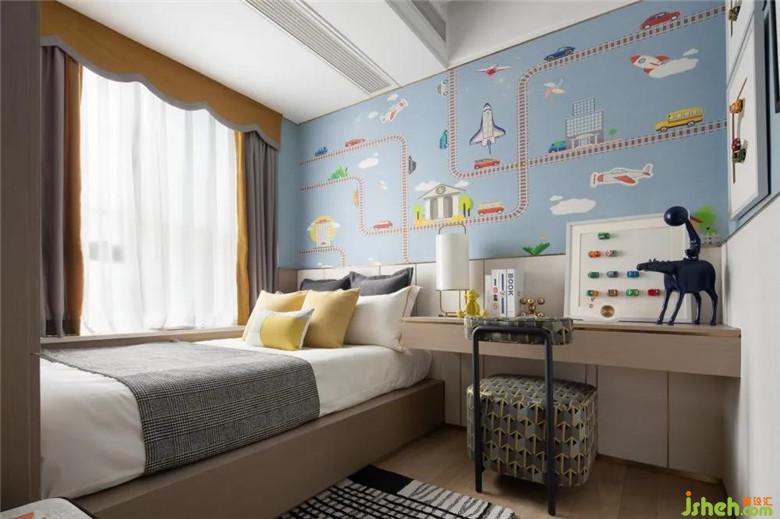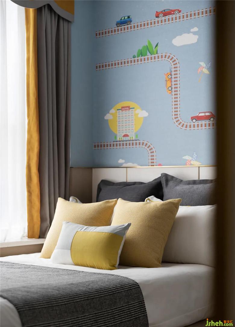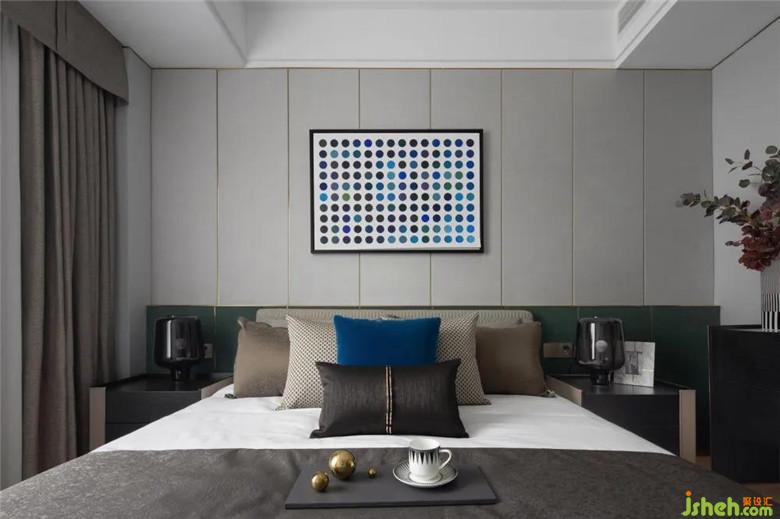 风的流动,光的青睐,在墙面留下足迹,主卧床头以趣味的几何线条勾勒出个性的视觉张力,样板房设计令空间在低饱和度的色彩中跳脱出轻灵的节奏感,生活与艺术在此静谧融合。