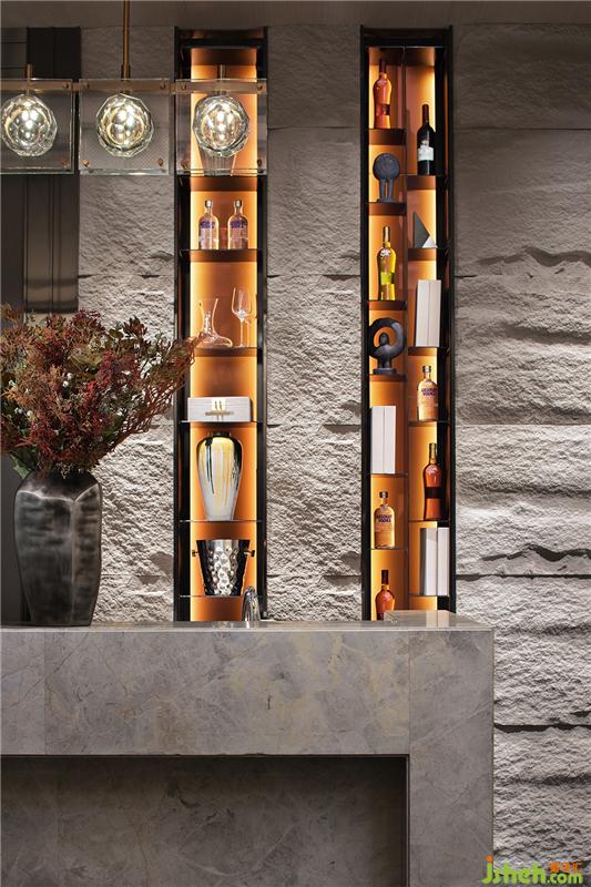 光线从不锈钢镂空隔断渗入水吧区,形成似透非透的格局。水吧区域,运用木、石、金属等材质,销售中心设计使氛围产生质的变化,简约下不乏幽静慵懒之感。