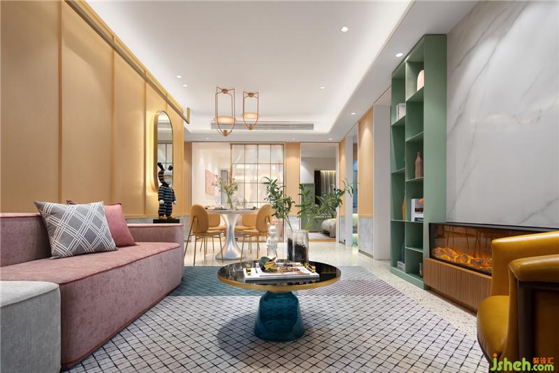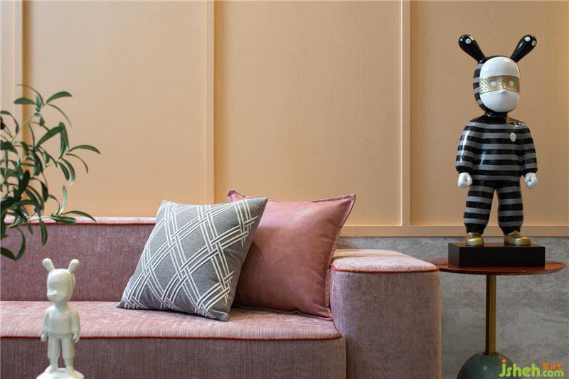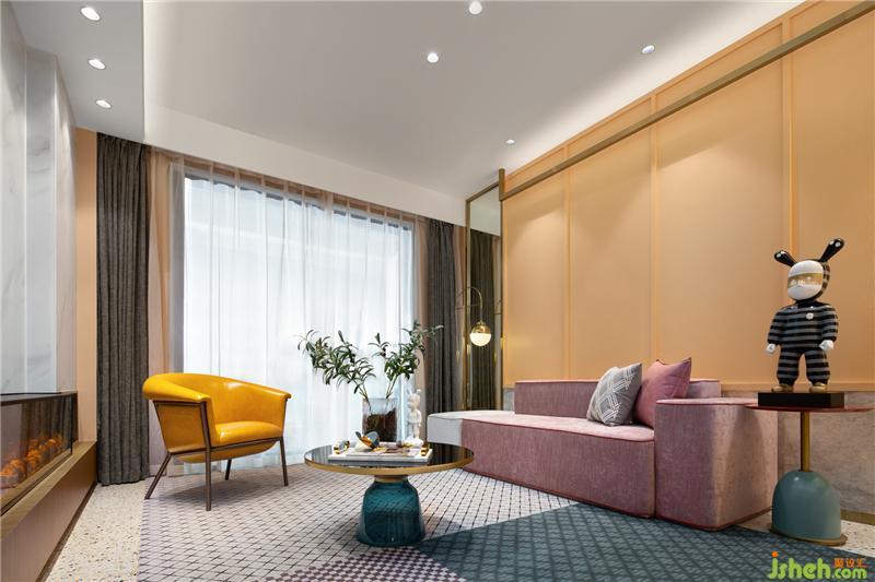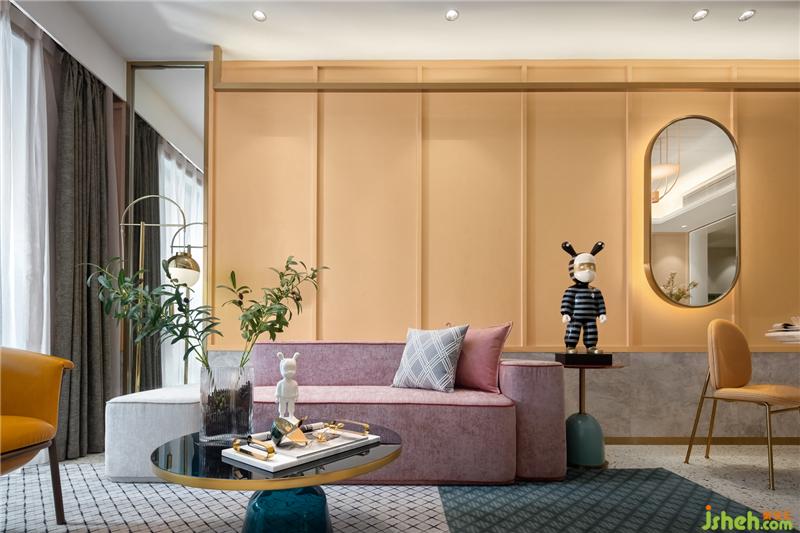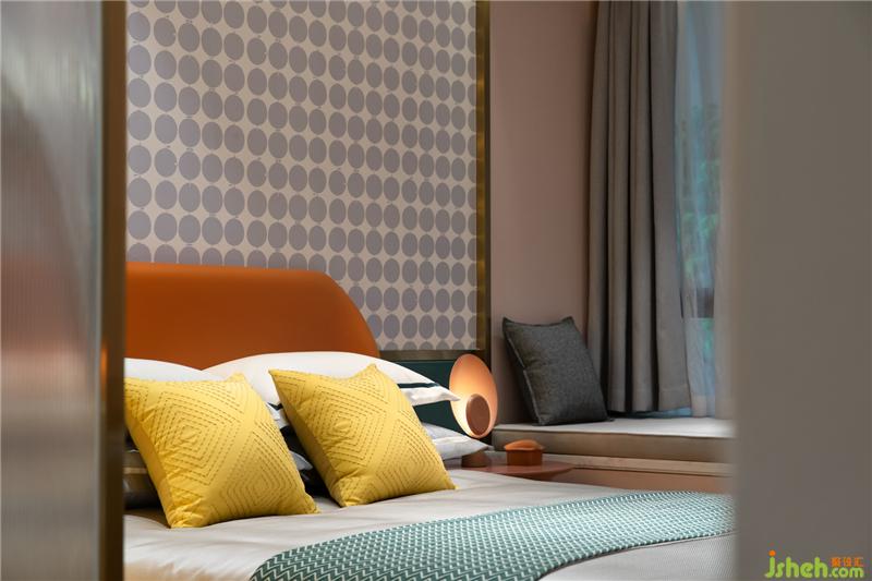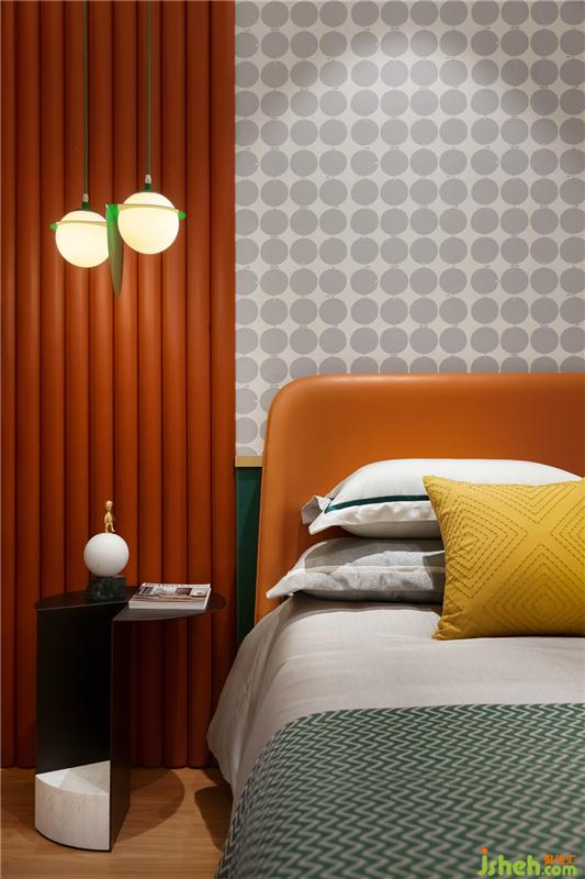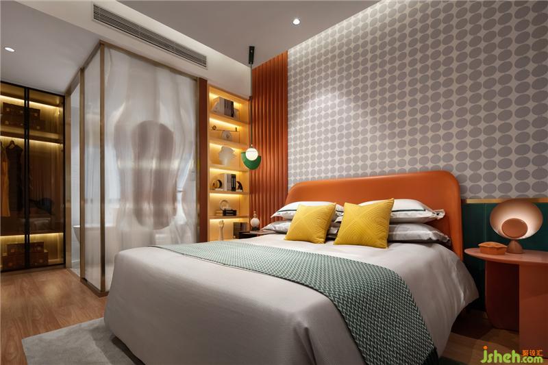 起居室色彩的构建按严谨的功能逻辑进行表述,暖橙色切入床头及背景,给予休憩空间情绪上的治愈之效。配饰及床品刻画对美的想象,尽可能地降低它的杂质,从而提升空间的质感。