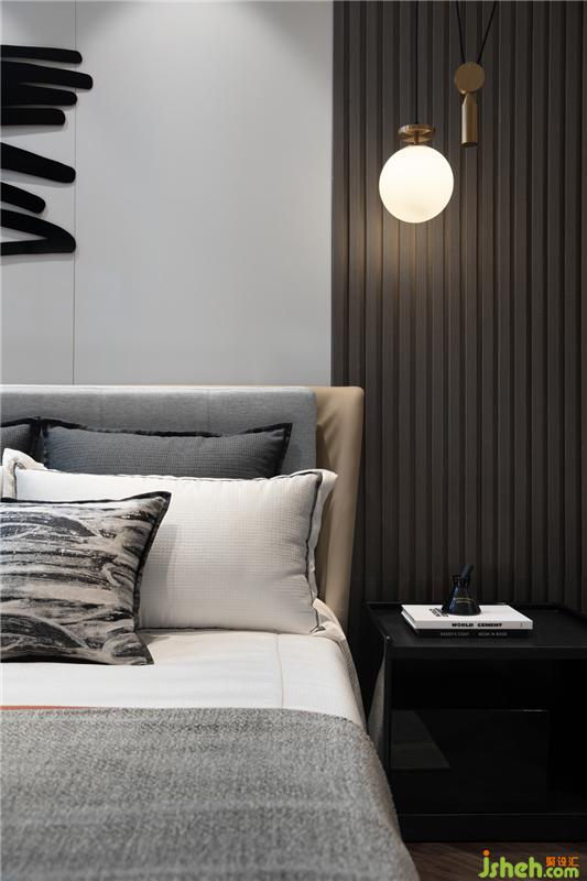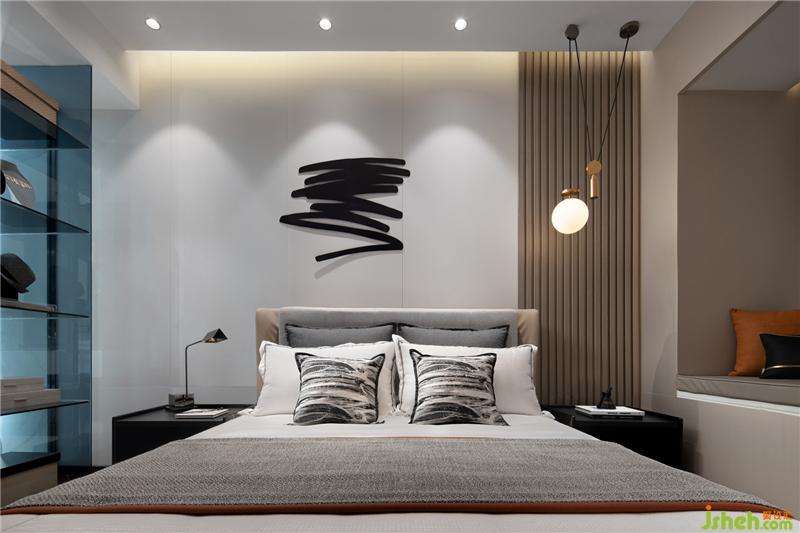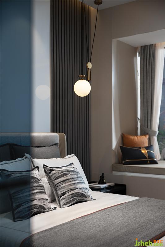 飘窗创造休闲阅读与睡眠的空间,落地衣柜形成视觉上的通透感,样板房设计灯光采用比较暖的颜色照明,流露出温馨之情。