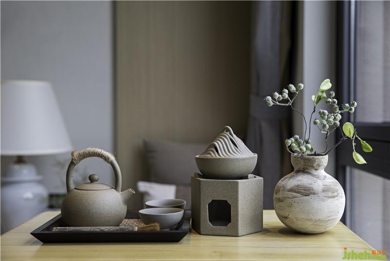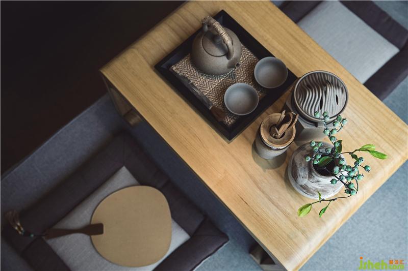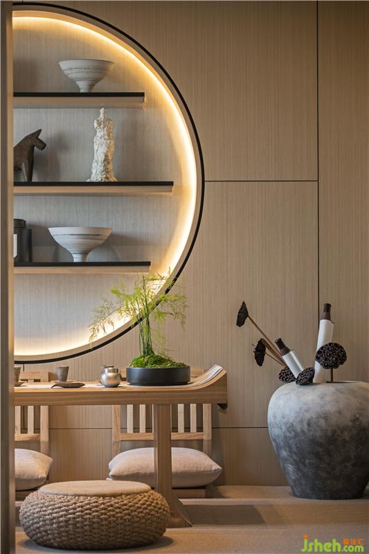 草蒲坐垫、枯枝莲蓬着力呈现高雅的古今格调