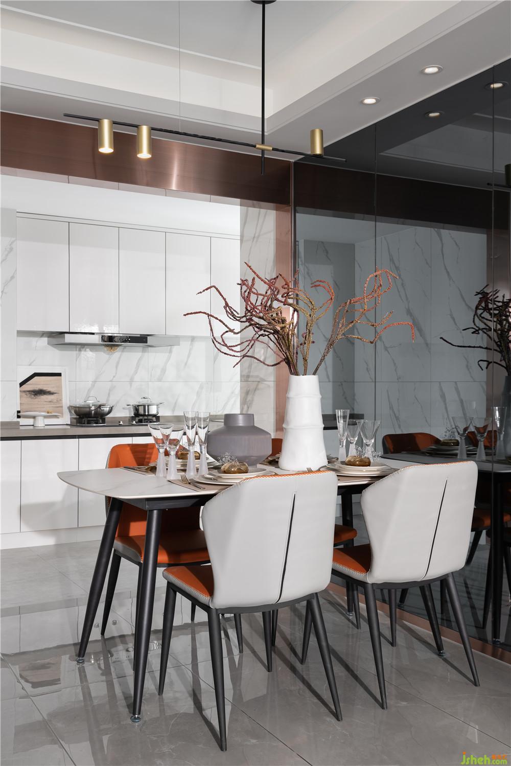 春去秋来,晨昏日暮,餐厅利用光泽的瓷器、餐具编织着属于这处空间的优雅,线性灯饰,简洁而不失高级,烂漫的红叶与大面积灰镜增添了空间趣味感,不中断梦境的延续......