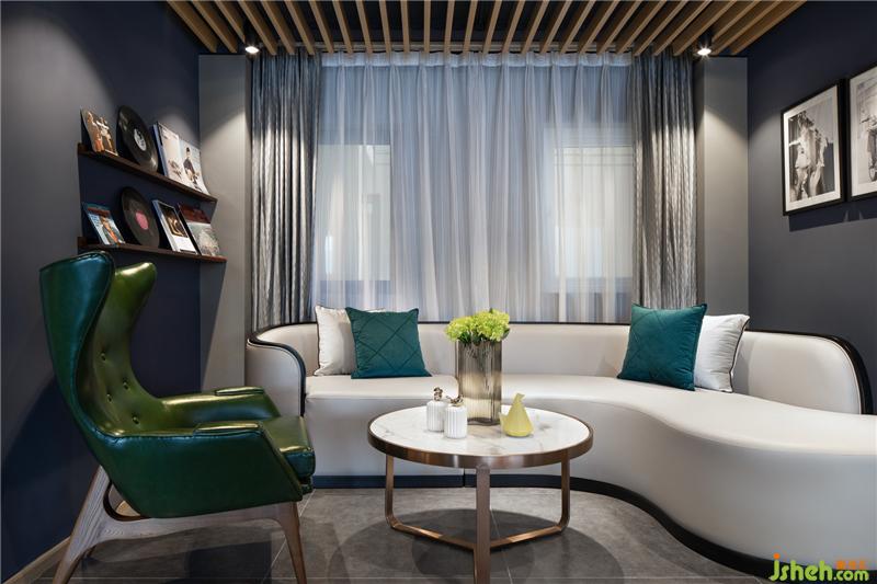 幽深的色彩下,穿插不同规格形式的落座区,满足多元交谈、互动的需求。