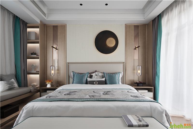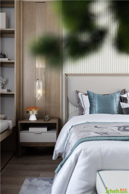 将云霞雕色,转化成馥郁沉稳的一方寝居,精致与温柔,俊朗与活泼,都不乏其中。黄铜背景墙正如泼墨堆栈的画幅,让清雅与古朴在空间涤荡。