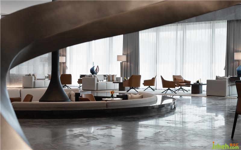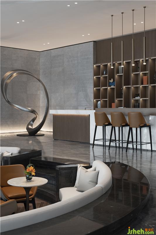 售楼处设计在大理石镜面的映射下,光影是唯一变幻的装饰手法