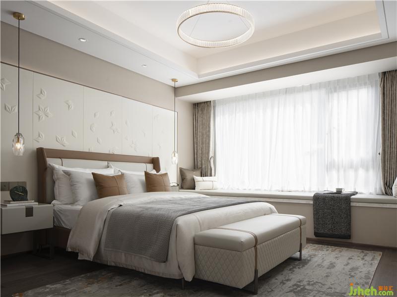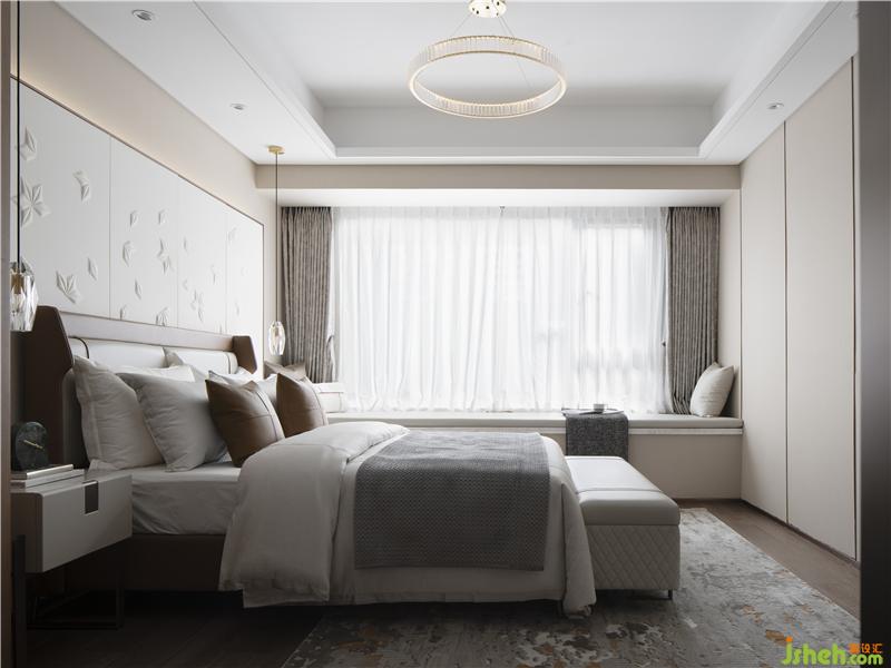 卧室风格现代简净,纤尘不染的白色天花、