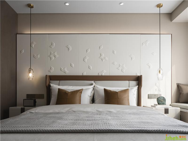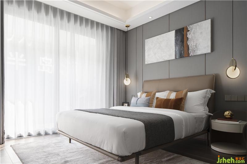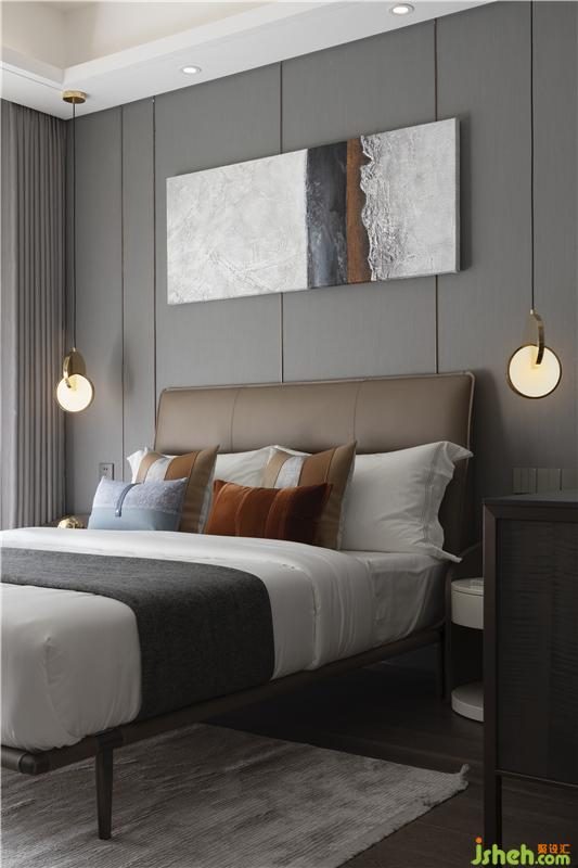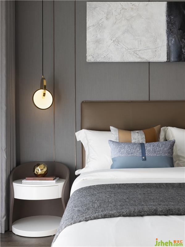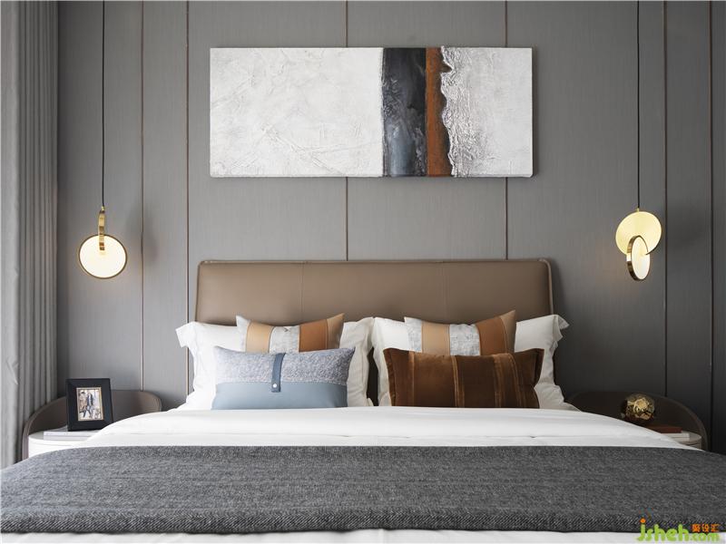 色彩协调的墙面挂画、雅隽茶咖色调床品的轮廓