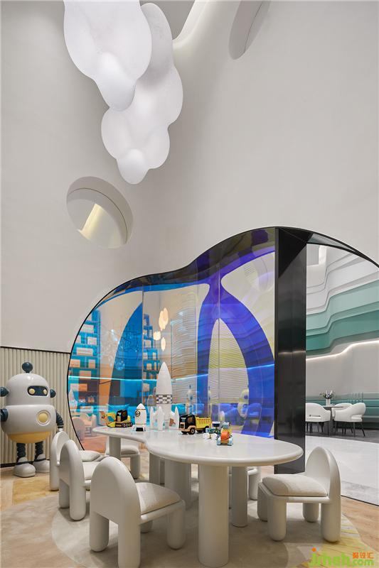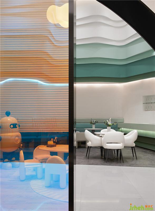 建筑如一艘透明玻璃的飞船,通过空间和材料表达情感