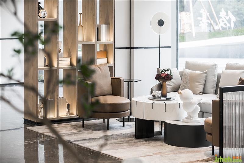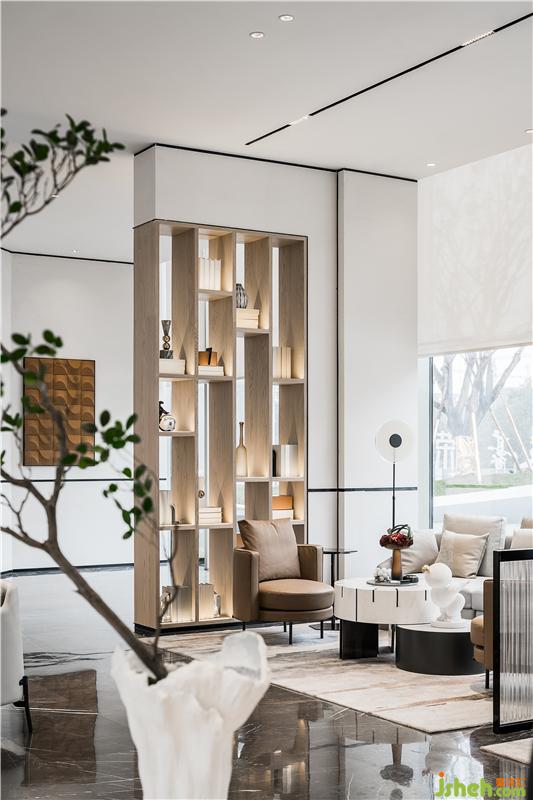 顺着时代美学的记忆,以素雅的设色铺陈空间的格调和趣味,在极简的布艺沙发、温润的木艺列架、抽象线条的编织地毯之间,构建起一个可安静交流的功能空间,以丰富而实用的场景呼应空间的复合态。