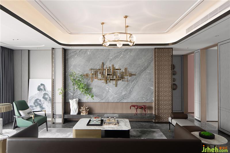 材质说明|圣保罗灰石材、爱马仕灰大理石、仿古铜不锈钢、艺术玻璃、扪布