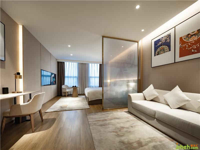 即将入住房间的人们,在光线的牵引下步入客房楼层,光线开敞明亮,调节为亲切柔和。打开客房的一刻,陈设的是屏风,正如北京四合院,进入后看到的是照壁。基于酒店住宿最直观的理念,一天的重启需要一些基本行动,包括一小时沐浴、七小时睡眠和一小时梳妆,共九个小时。我们为旅客提供了独一无二的理想城市住宿体验,通过六感设计,从视觉、听觉、味觉、嗅觉、触觉以及心觉来把握不同房型的尺度。