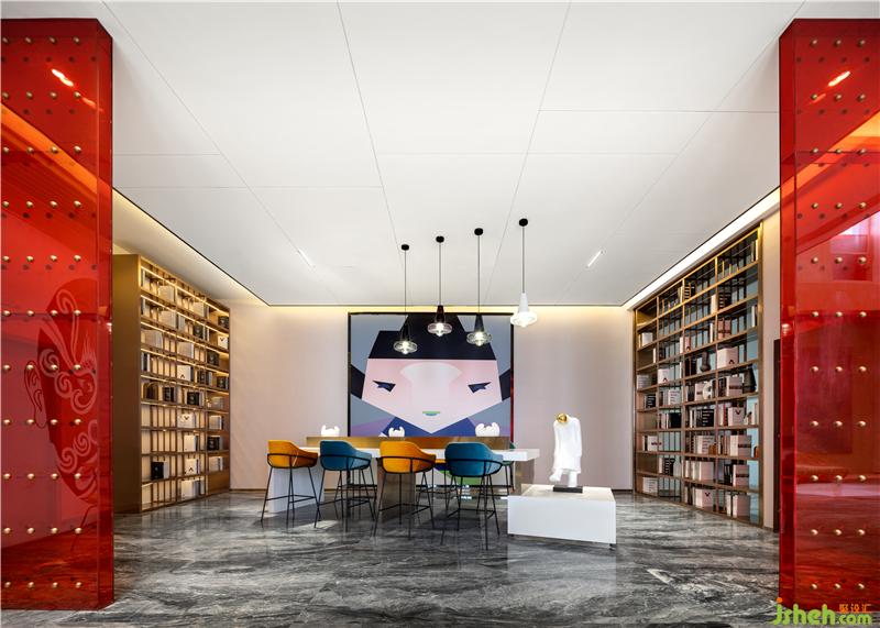 故宫红的色彩让书吧区成为午后的热门“打卡地”,有人在沙发区养神,而兴致高昂的年轻同事继续在此埋头创作。