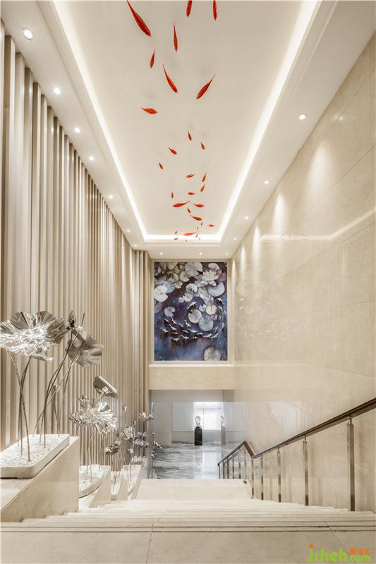 酒店设计连接首层公共区域到餐厅的包间,客人的主要行走流线,我们试图将场地的在地文化体现在空间之中,比如锦鲤,故宫博物馆里竹砂红的器皿,这些色彩都可以呼应大厅。精致的、现代的、细心的,有内涵的,服从于环境,融于其中的空间。找到都市生活方式与城市文化之间的平衡。