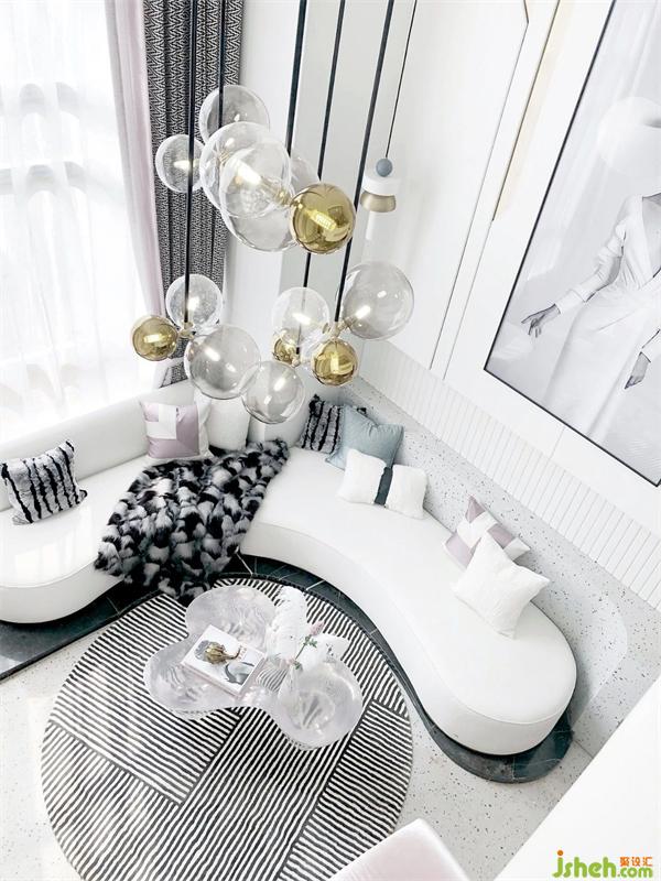 来此,脚步且跟随灯光放缓。感受细腻的素白沙发与墙面在空间中的温柔对话。