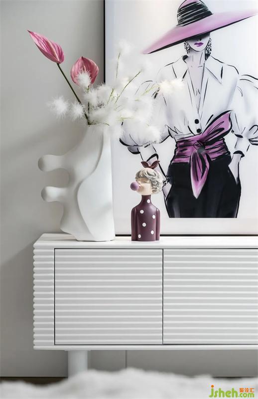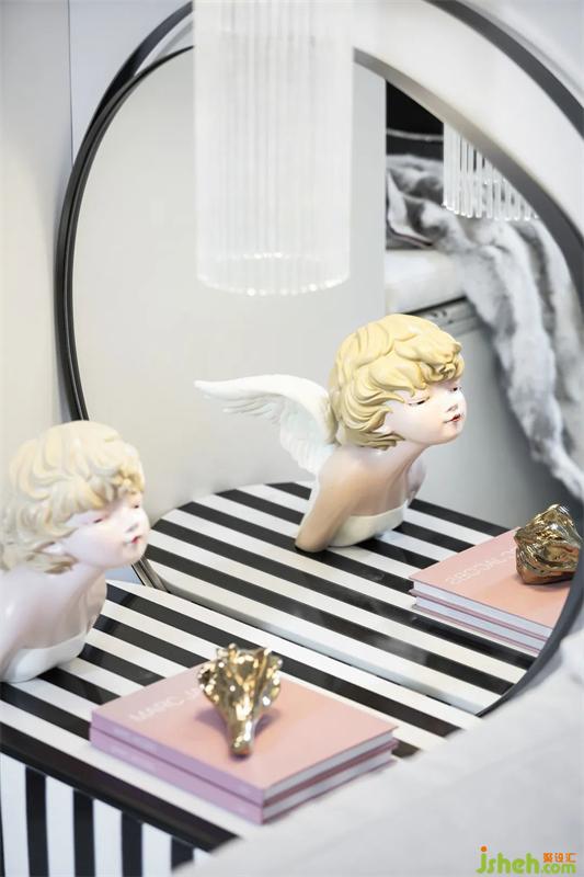 生活的趣味性发生在这处似断非断的独立空间,纯美羽毛落地灯、梦幻的公主吊椅被安置在楼梯下方,落座于此,阅读书籍、独饮浅酌,都让生活更添一份闲逸、舒适