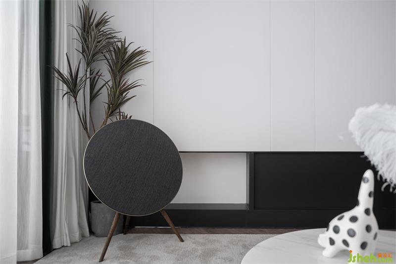 关于室内的陈设构思,我们希望保持这一种干净的感觉,连续且有诗意的空间。为这幕单色背景加入异色的是颜色和谐的马尾铁和Beoplay环绕家低音炮音响,温暖的定制壁炉等等,轻盈、明亮的空间氛围点亮了日常。