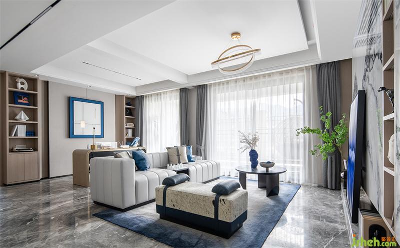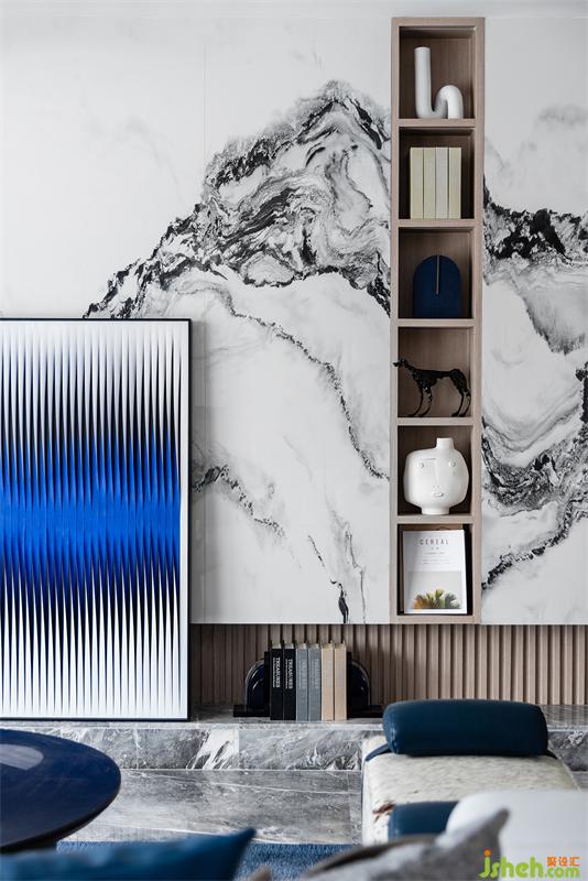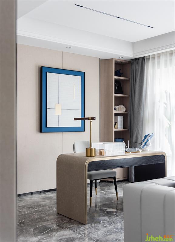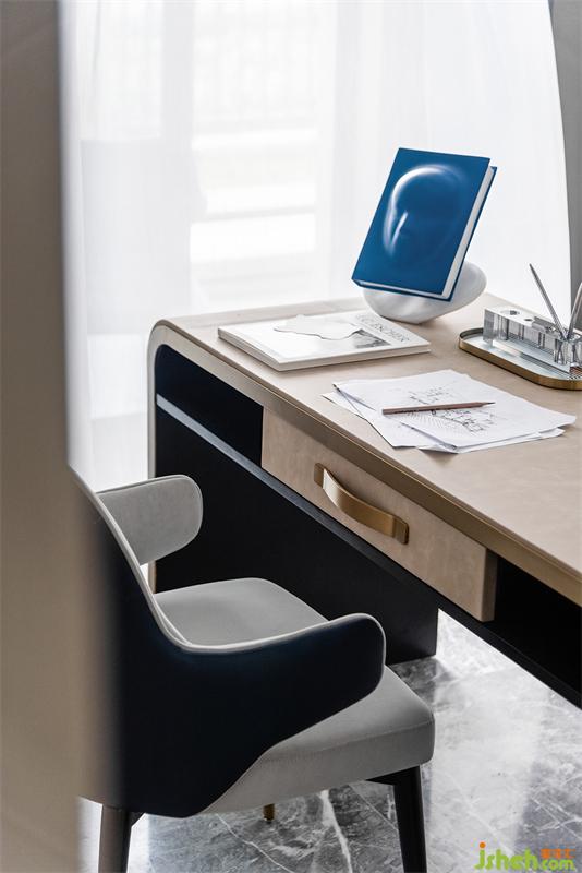 考虑到整体空间节奏,将原平面客厅布局重组,释放空间,增强空间尺度感,打造生活氛围。工作室与客厅相连,可以一起咖啡,可以留客。夜晚月中有清影,还有有风声。
