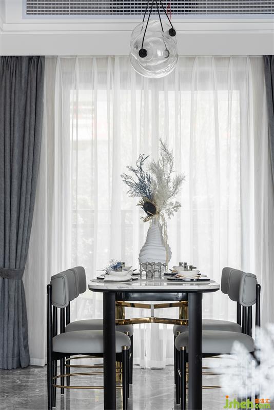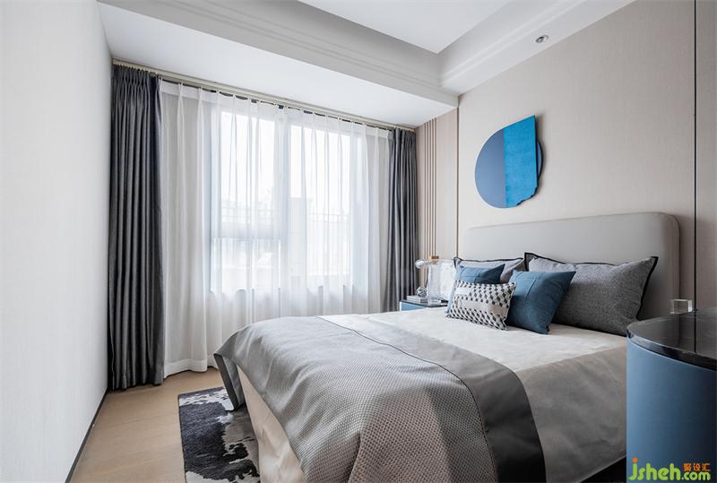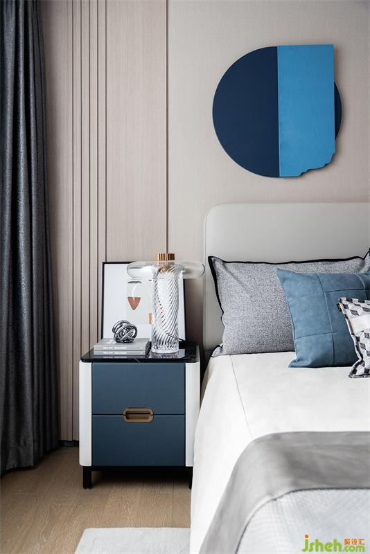 温馨柔和的卧室,窗帘为室内镀上朦胧滤镜,调和了灰度空间的硬朗质感,艺术范儿的小景陈设更显亲和,相得益彰,凸显空间趣味性,格调尽现。