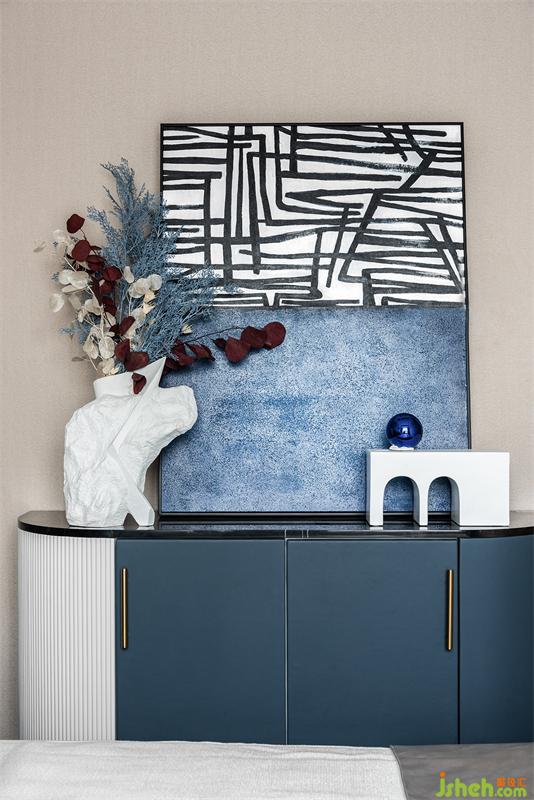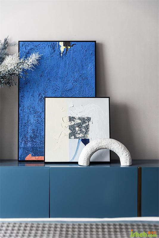 装饰画作与柜体还有煦和的自然光线相互交织,如和风飘过轻柔舒适。