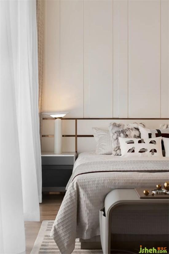 每个居者、每个空间所适用的物料材质各有不同,而我们的任务,就是全力为之匹配到极致。我们希望在回到主卧的时刻,光线与清风兀自对流,穿透性的灵动与简净气息无形间盈满一室,或随着时间的推移徐徐而至,或伴着人的互动而至纯至简。