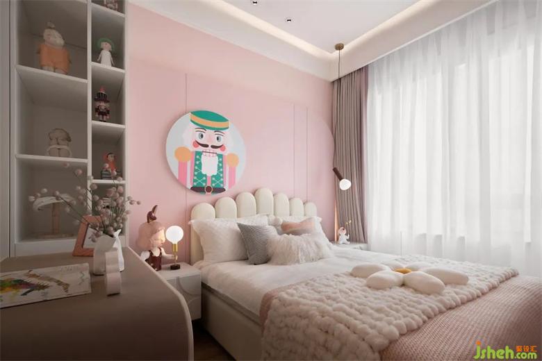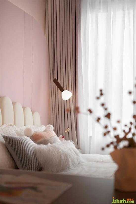 链接柔软的卧室,是我们链接着过往时光、当下记忆与未来畅想,情感与温度是永恒的主题。样板房设计女儿房延续素净的白底画布,融合柔煦的粉色,点染盎然生动的胡桃夹子,自然风、光轻盈流经,触感和空气中的味道烘托出柔美气质。