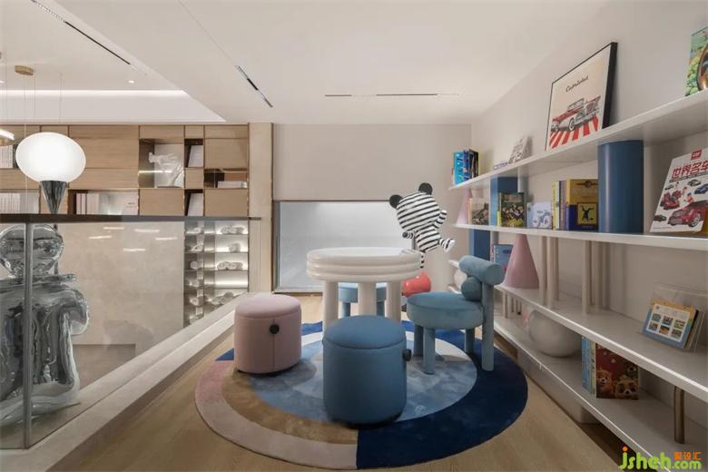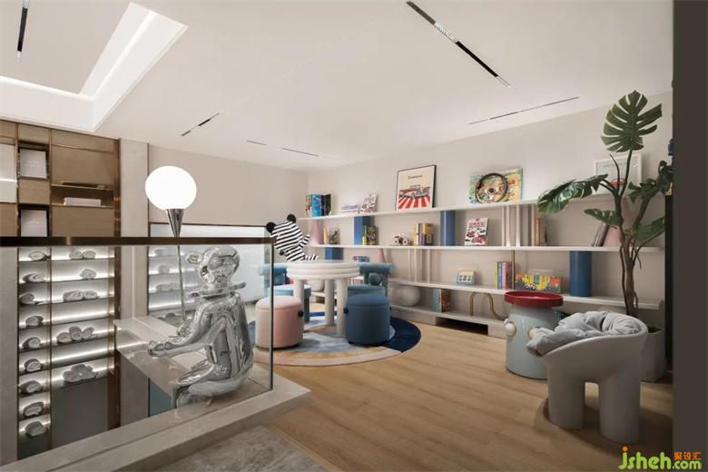 “正是诗意首先使人进入大地,使人属于大地,并因此使人进入居住。”空间的垂直动线相互呼应,由开放的酒吧休闲厅转入灵动的绘本亲子区。满足亲友欢聚、与之互动的双重需求,塑造了一个温情脉脉的互动空间。