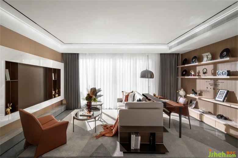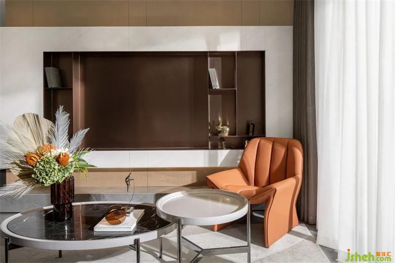 在简明的线条里,利用光影、材质、色彩的平衡,营造精致而不造作的画面,加入独特的摆件、画作,以及书籍,点缀细节,凸显当代的个性艺术,而留白、留空的位置对于居者,样板房设计或许还有更多值得填充并意义深远的内容。
