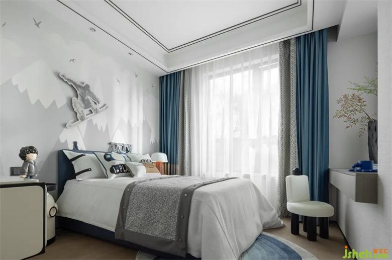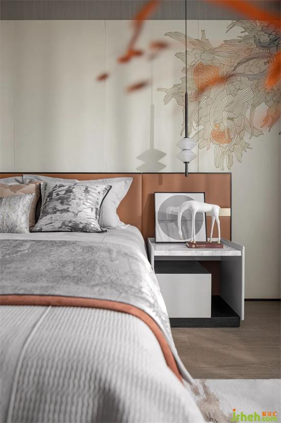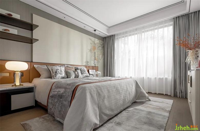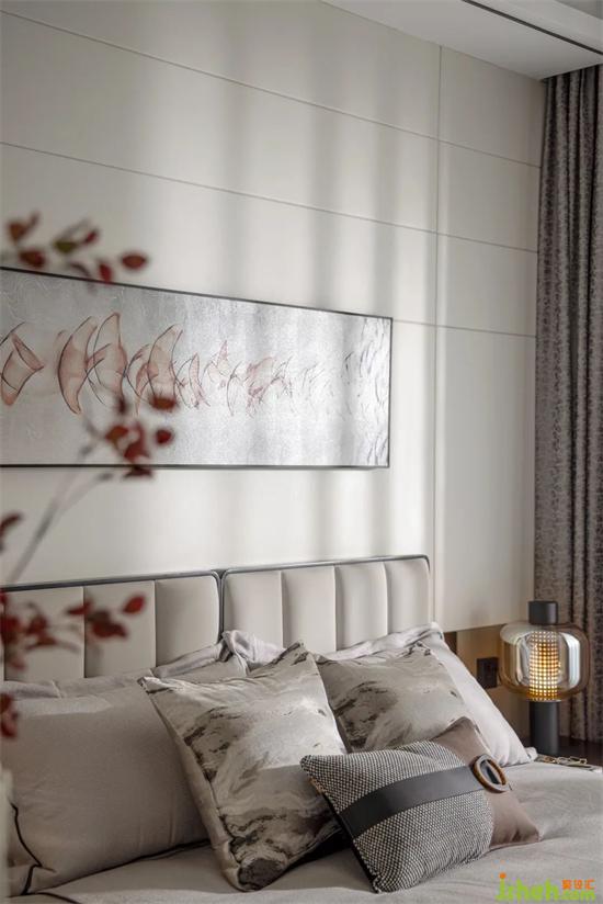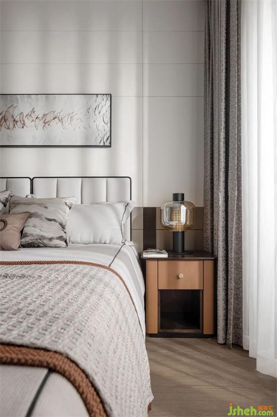 改善衣帽间布局,实现更好的展示储藏功能,赋予卧室关键词:细腻、裸感、自然、透气,以一种平静柔和的方式浸润悠然、沉静、深邃而绵长的空间氛围,样板房设计与未来居者内心共情,于纷繁里澄明本心,意向自在,或月笼轻纱,或雨笼烟波,光影天成,恰如其分的空间共鸣定格人与万物最佳尺度的平衡。